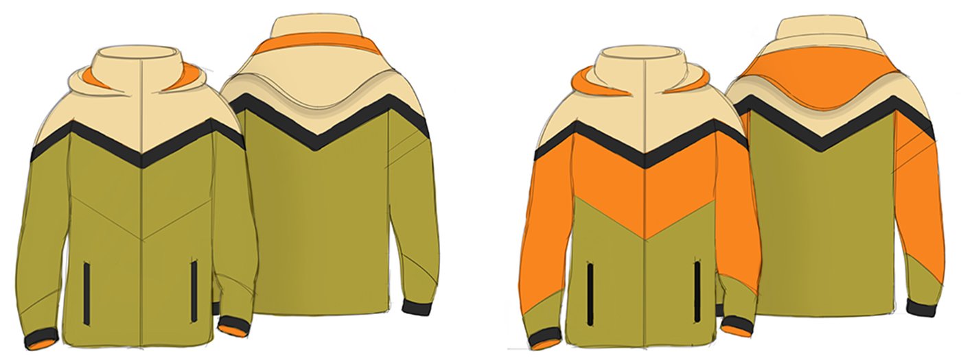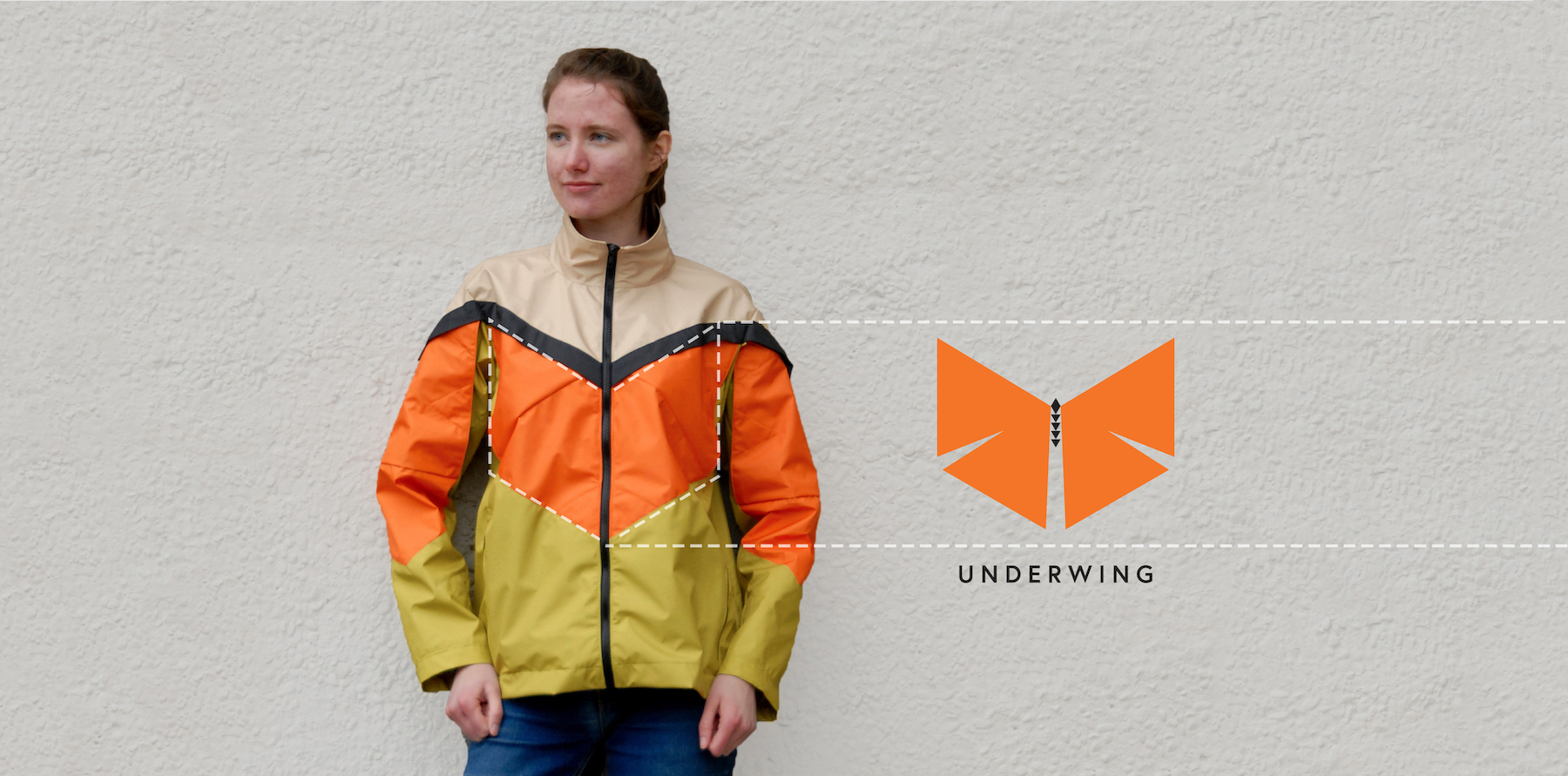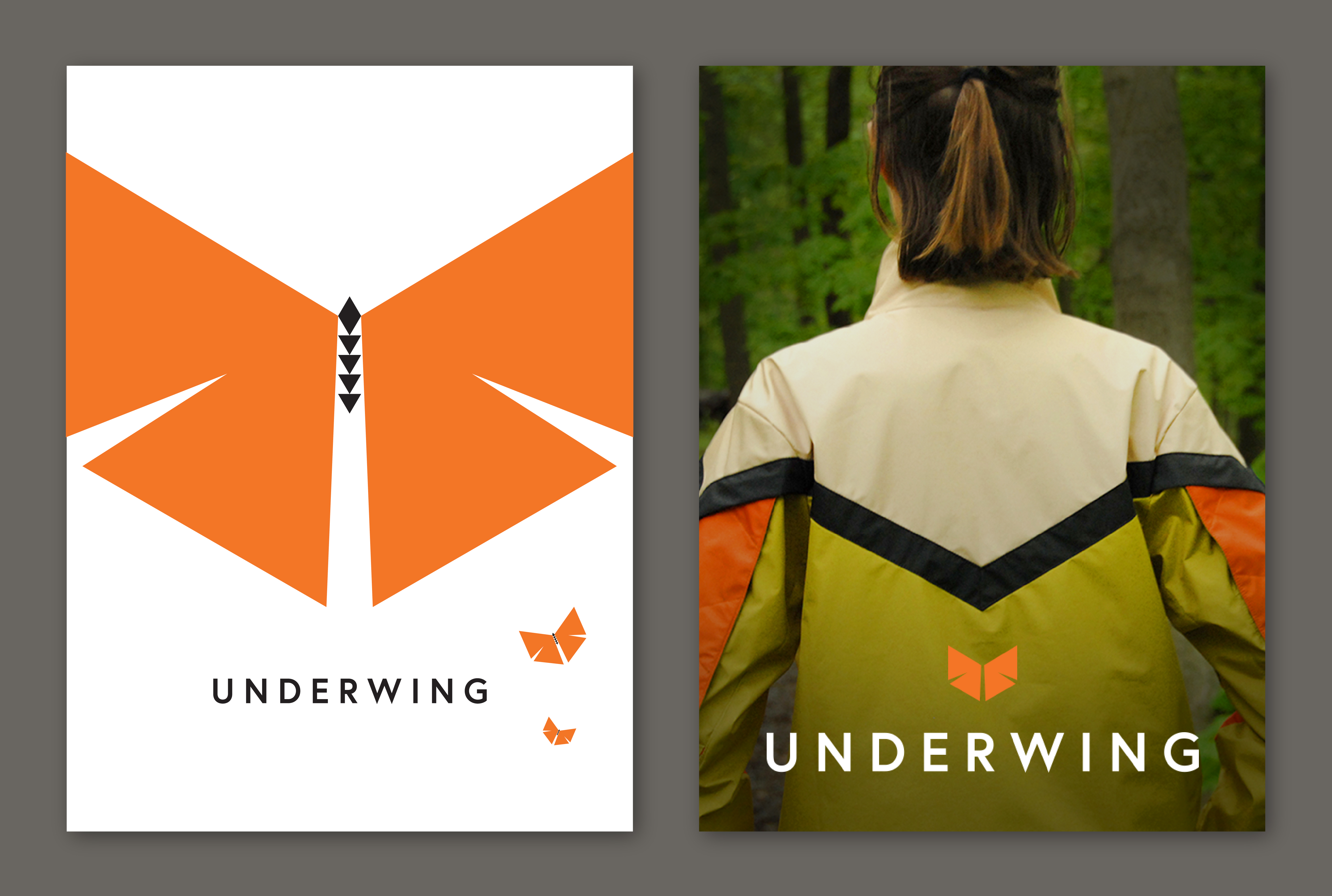 For hikers, high visibility clothing can be life-saving. Over half of the 2,000 mile Appalachian Trail, a popular hiking trail in the US, runs along land used by hunters. Hikers can keep themselves safe during hunting season by wearing blaze orange clothing to make their presence known. In the offseason, however, hikers may choose to blend into their surroundings by wearing more natural colors. Currently, there are very few clothing options for hikers that can adapt both of these needs. The Underwing brand strives to fill this gap with a moth inspired hiking jacket that can transform, keeping hikers safe in all seasons.