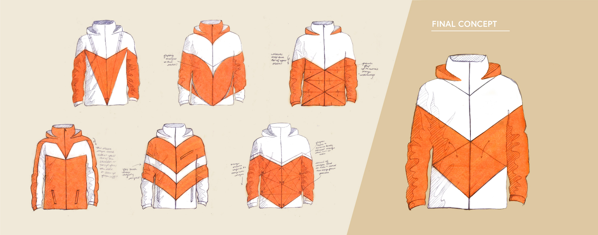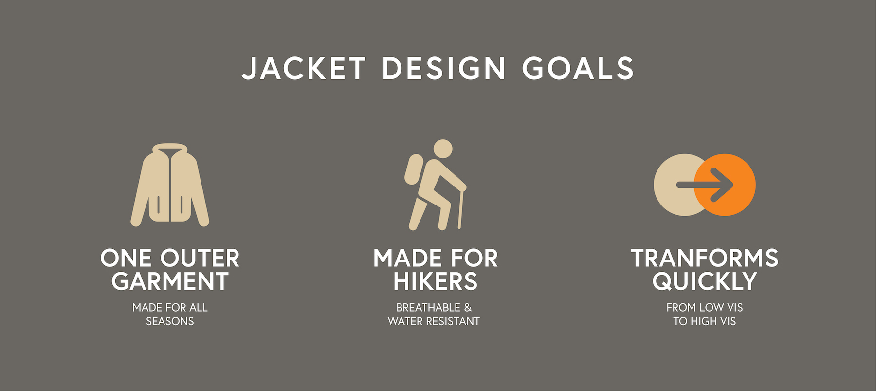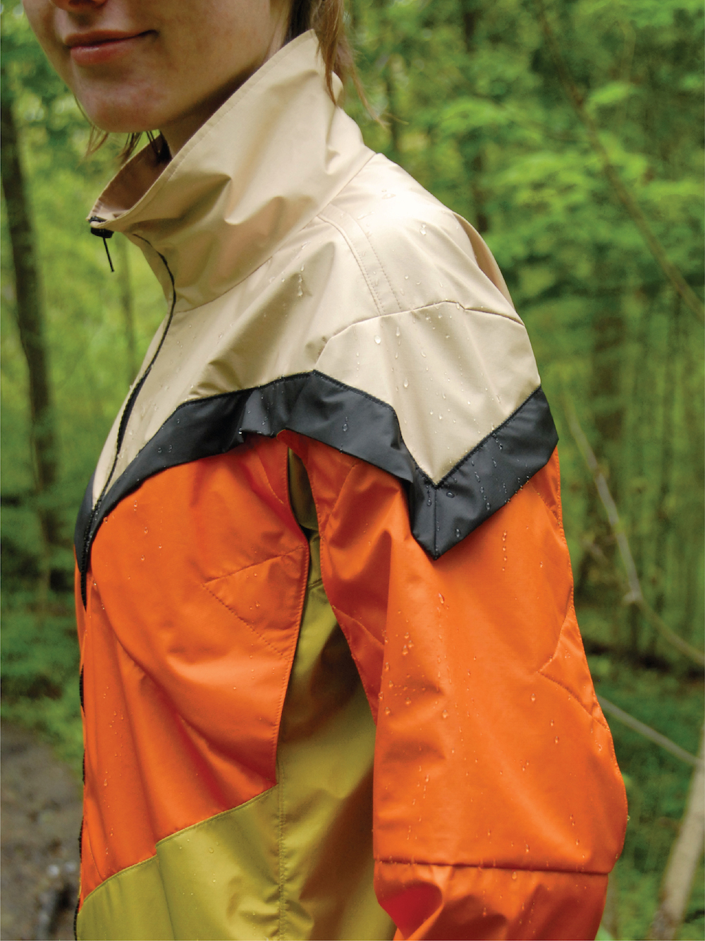 For hikers, high visibility clothing can be life-saving. Over half of the 2,000 mile Appalachian Trail, a popular hiking trail in the US, runs along land used by hunters. Hikers can keep themselves safe during hunting season by wearing blaze orange clothing to make their presence known. In the offseason, however, hikers may choose to blend into their surroundings by wearing more natural colors. Currently, there are very few clothing options for hikers that can adapt both of these needs. The Underwing brand strives to fill this gap with a moth inspired hiking jacket that can transform, keeping hikers safe in all seasons.